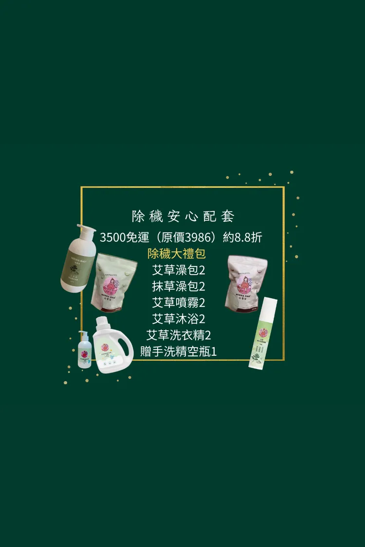 艾草澡包2抹草特製澡包2艾草噴霧2艾草沐浴露2艾草洗衣精2、贈洗衣手洗空瓶1